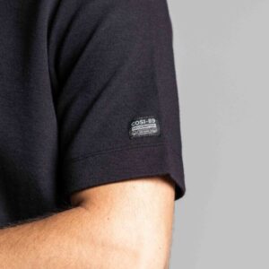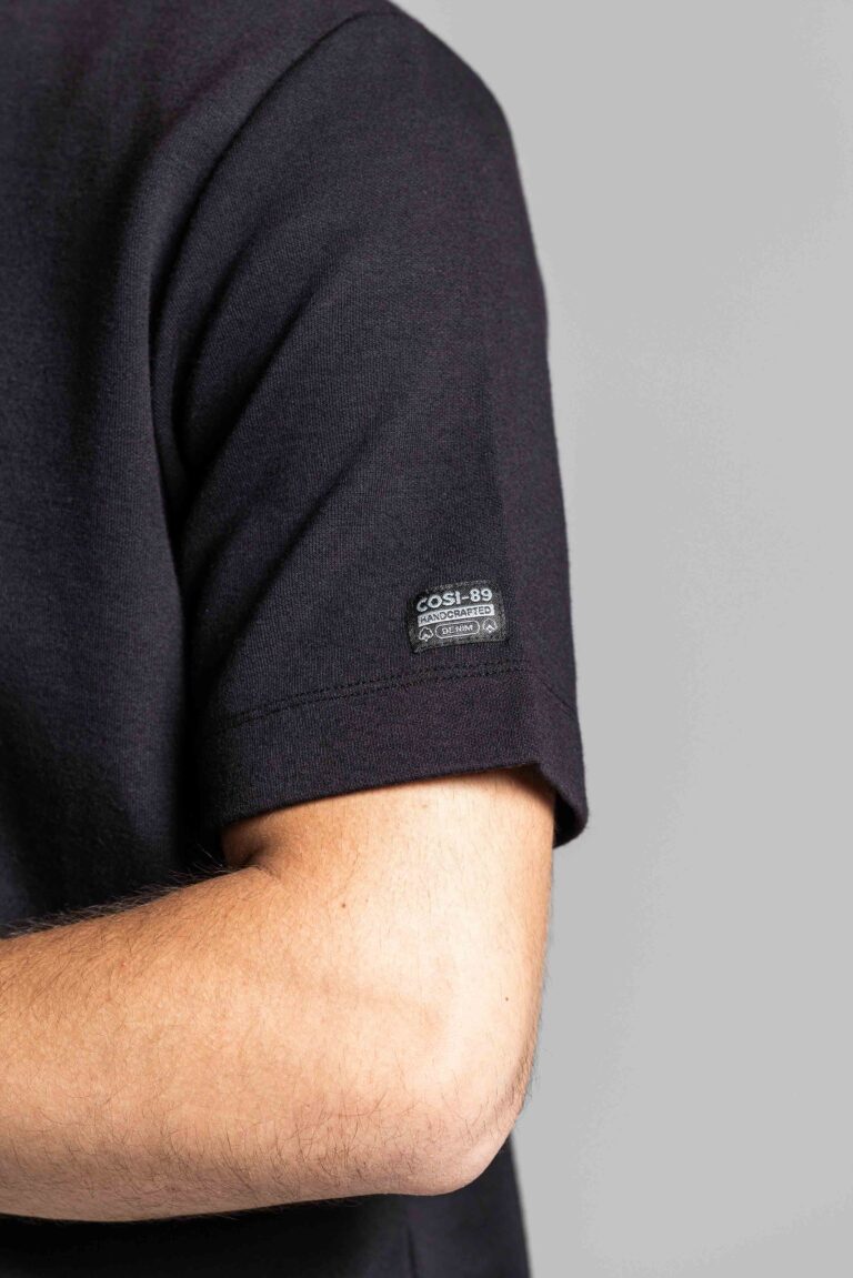 Slim fit μαύρη μπλούζα με ιδιαίτερο πανί και μία COSI ετικέτα στο μανίκι.