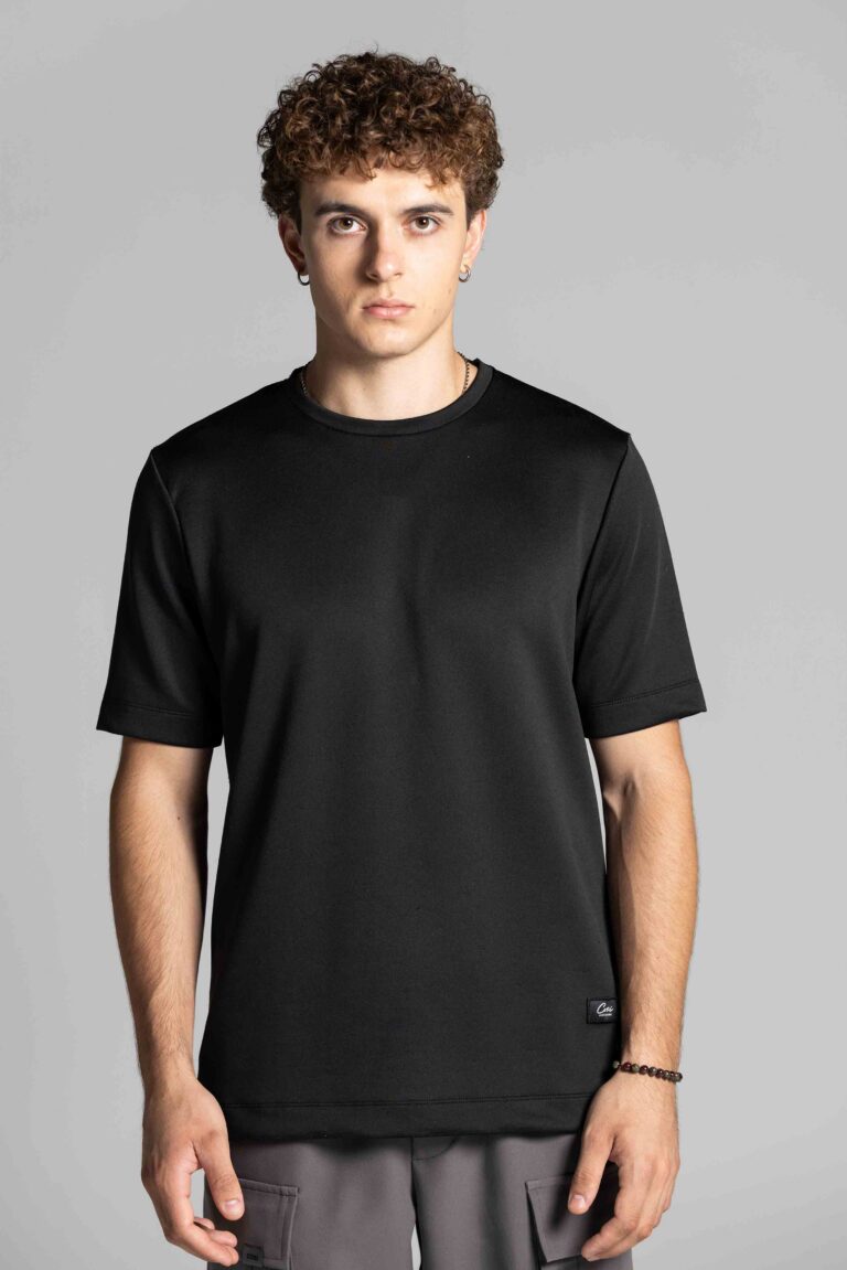 Slim fit μαύρη μπλούζα με ιδιαίτερο πανί και μία COSI ετικέτα στο τελείωμα.