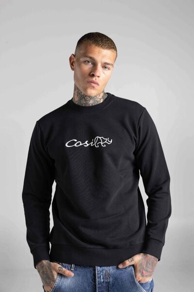 Μαύρο φούτερ με στρόγγυλη λαιμόκοψη και επιγραφή με το λογότυπο Cosi και τον ρινόκερο.
