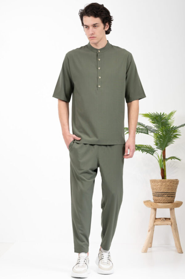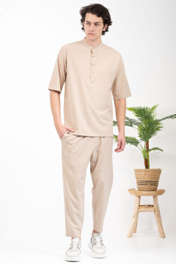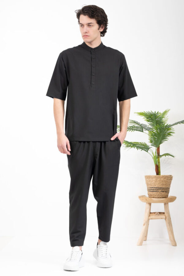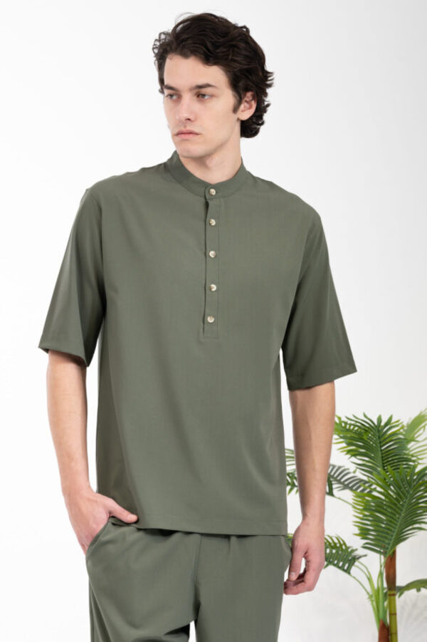 -Πουκάμισο Vittorio με μάο γιακά και μανίκια τριών τετάρτων.