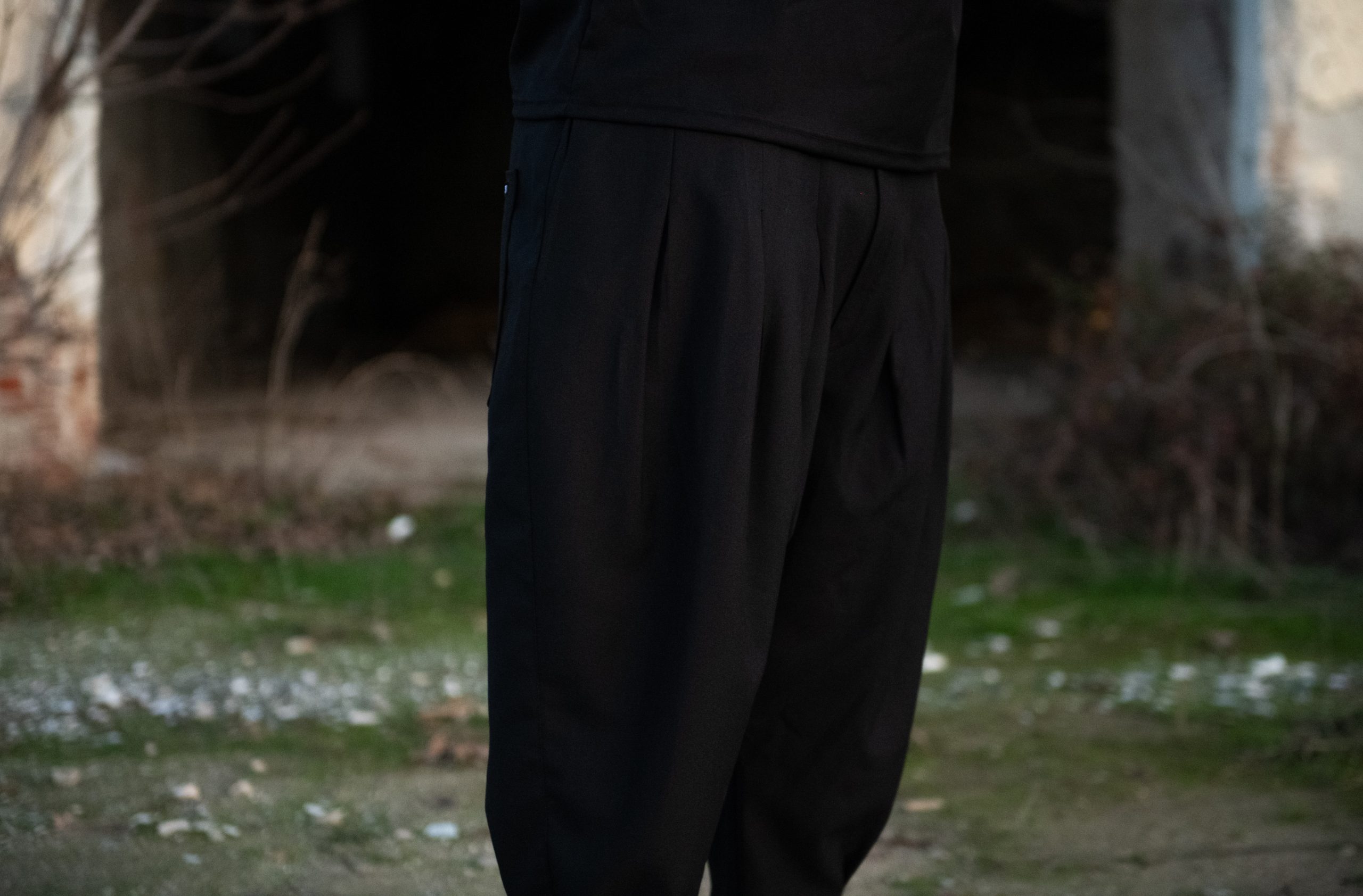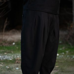 Παντελόνι της ελληνικής εταιρίας Twin Black oversize με πιέτες και στένεμα στο κάτω μέρος.