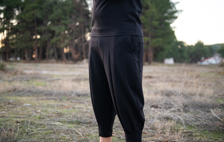 Παντελόνι της ελληνικής εταιρίας Twin Black με στένεμα στο κάτω μέρος σε μαύρο χρώμα.