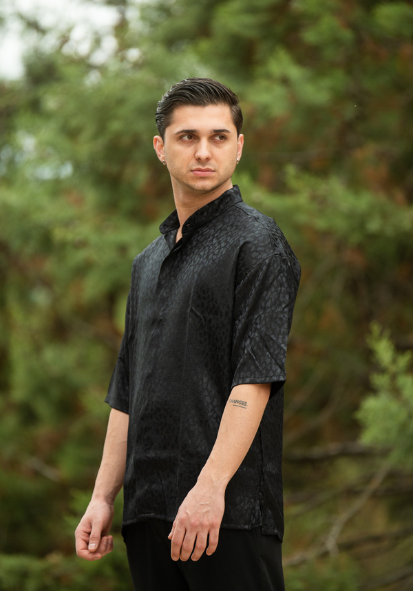 Πουκάμισο κοντομάνικο λεοπάρ σε μαύρο χρώμα της εταιρίας Twin Black.
