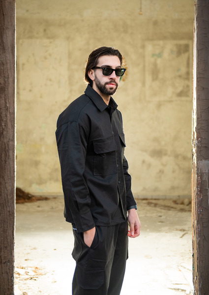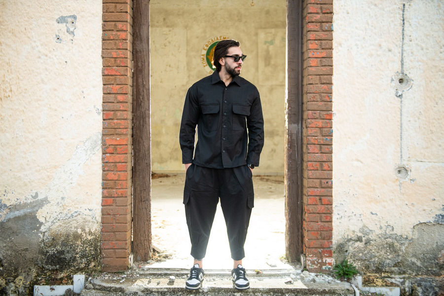 Πουκάμισο της ελληνικής εταιρίας Twin Black με τσέπες σε μαύρο χρώμα.